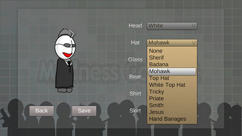 通过右侧“head”“hat”“glass”“shirt”等选项,自定义外观,完成后点击“Save”保存。