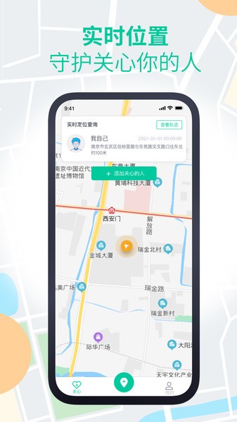 1、在app关心页面,可以查看个人位置,也能添加要关心的人;