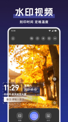 2、允许应用调用相机权限后,即可正常拍摄照片与添加实时水印。