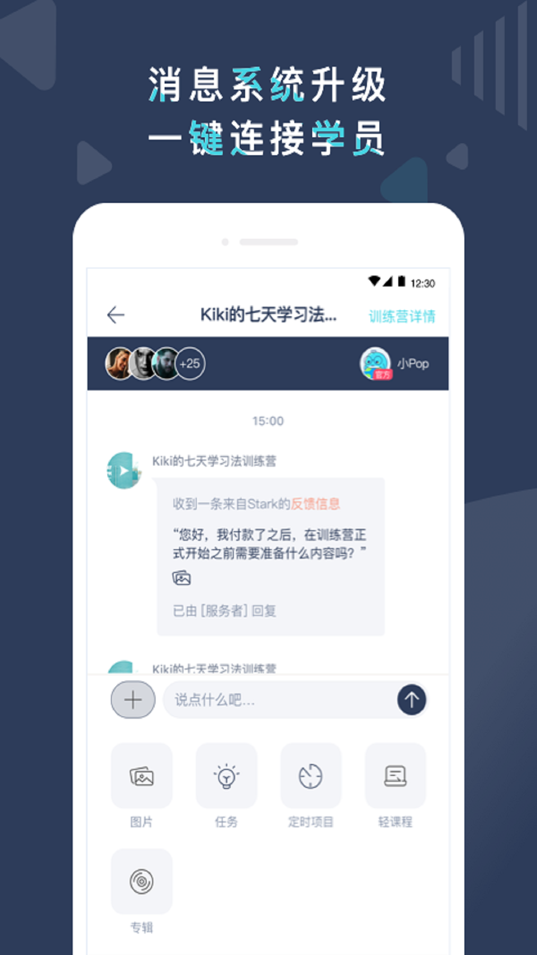 5.查看消息,与学习者进行文字交流的信息可以及时回复