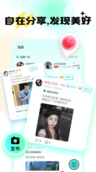 3、动态分享:用户可以发布自己的生活动态、心情感悟、照片视频等,展示自己的个性和生活状态,其他用户可以点赞、评论和转发。