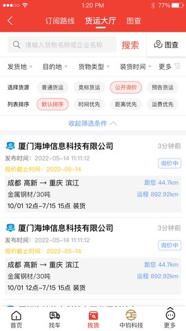 快速筛选,支持司机根据货源类型,运货时间以及运货路线等条件快速的过滤。