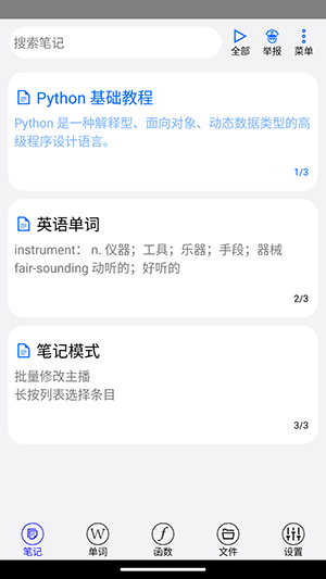 1、将整理好的文字内容自动转为语音,支持循环播放或随机播放,如同听音乐般轻松复习,适合在不方便看屏幕时使用。