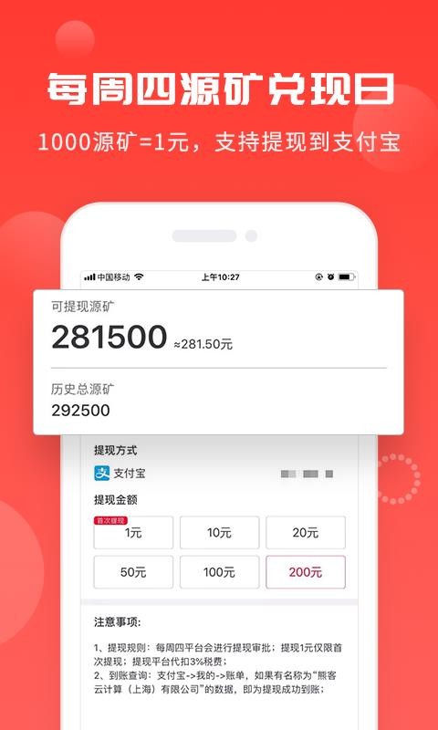 2、查询账户获得的源矿数量,及时掌握可兑换的金额;