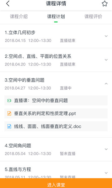 1.近期直播:更新最新的课程直播内容,在线为用户解答课程疑问更轻松;
