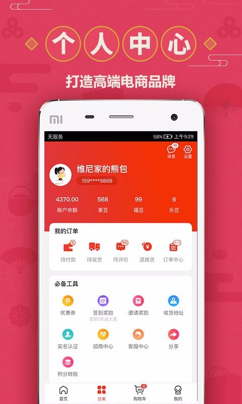 4、我得界面,为你带来订单查询,还可以查询优惠券。