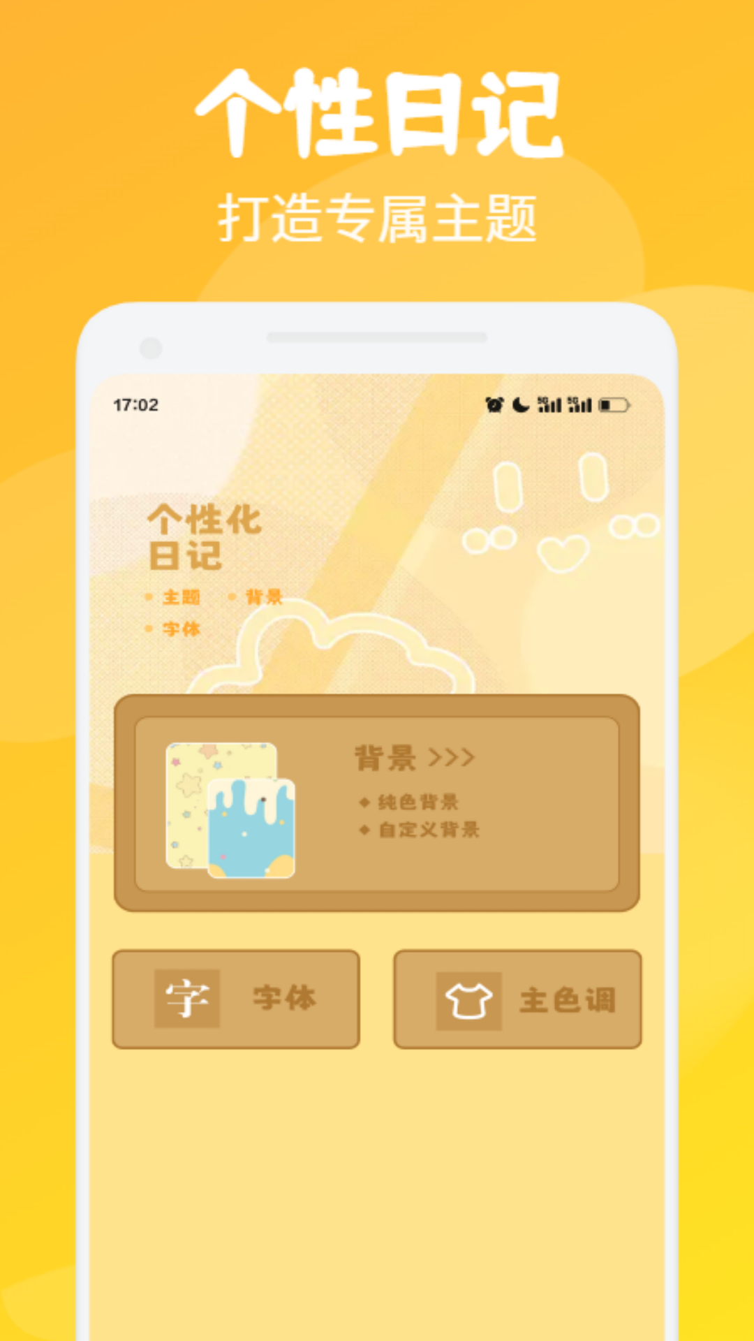 2、App从界面图标、可选字体、背景主题到动态效果与音效,均采用温暖可爱的设计风格,旨在营造一个令人放松愉悦的记录氛围。