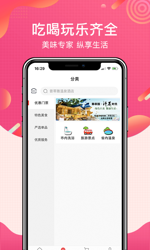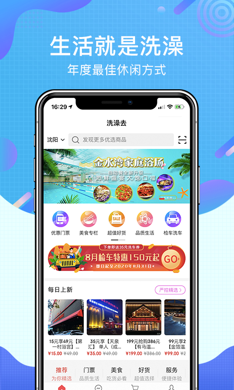 洗澡去app是一款周边商城服务软件,用户在应用中就能知道自己周边的各类商家门店信息,以便用户可以及时到线下门店进行消费体验。app为用户提供了洗浴、温泉、餐饮等多种生活场景,用户可以根据自己的需求,任意在线选择查看。我们有效帮助每一位消费者可以快速找到自己想要消费的服务,不用在线下跑,即可精准到店体验。也有效帮助商家门店提升了客流量,增加商家的曝光,让销售的业绩更佳。洗澡去app支持用户在线即可下单预订需要的服务,以便到场就能及时体验,无需排队等待,简单更方便。