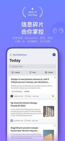 统一收集与处理。从时间、空间上优化碎片式的内容消费习惯,在大量信息中保持专注。