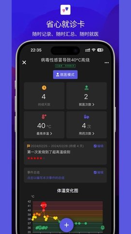 家人生病时,可随时记录症状、体温、用药情况,还能添加每日小结和就诊记录,形成完整的病情轨迹,后续复诊时给医生看,方便精准诊断。