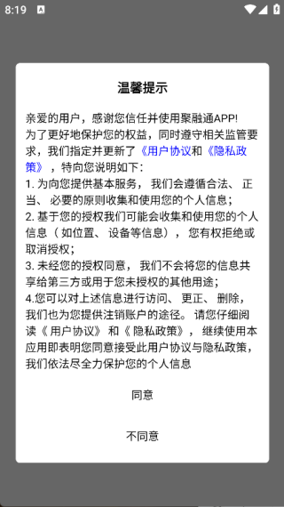 1. 下载并安装APP,点击‘同意’,即可进入下一页面;