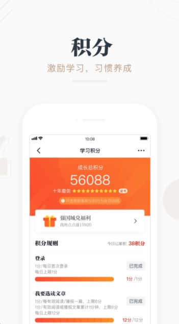 2、进入总积分页面,用户可按照积分规则完成每日积分(包括登录、选读文章、视听学习、学习时长、答题等);