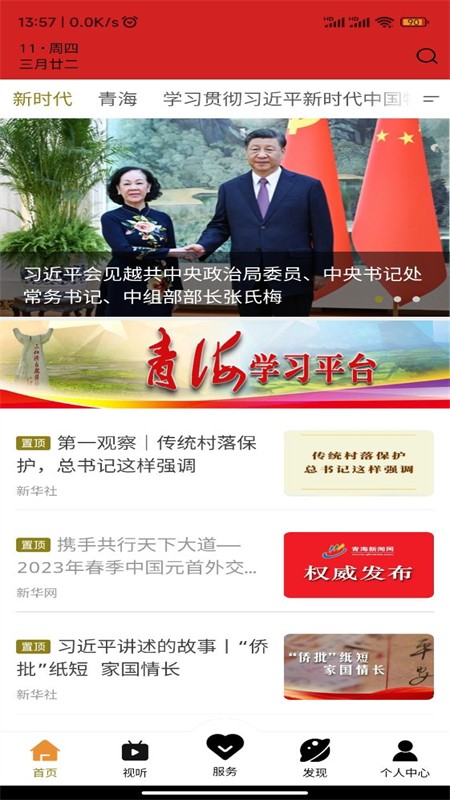 2、进入首页,即可浏览精选的视听内容、热门服务推荐及趣味发现合集。