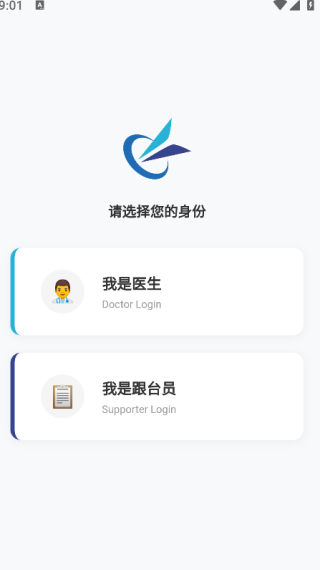 2. 选择我是医生或是我是跟台员,即可进入登录页面;