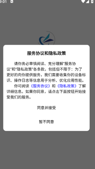 1. 下载并安装APP,点击‘同意并接受’,即可进入下一页面;
