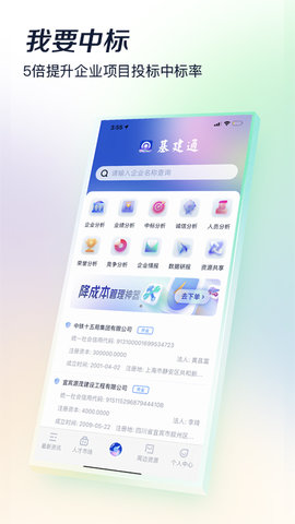 基建通是专业提供全国招标、中标信息的基建大数据平台,通过移动端和pc端向用户提供建筑资讯浏览、招中标数据查询、项目跟踪、自动推送、企业查询、项目投标等数据服务,帮助建筑企业经营人员随时随地掌握全国项目信息;日均更新20万+条信息,信息全、覆盖广、更新快。