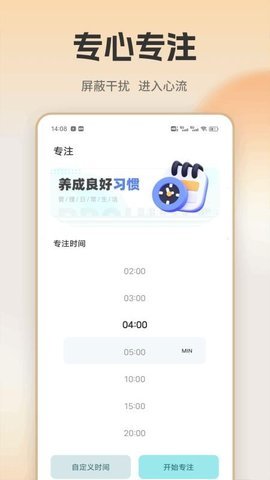 5、根据自身学习需求,自定义设置专注时间,培养学习习惯。