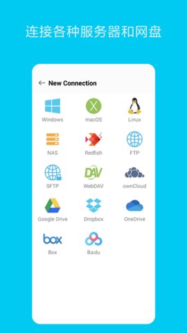 2、然后选择你想要连接的类型:Windows, macOS, NAS等;