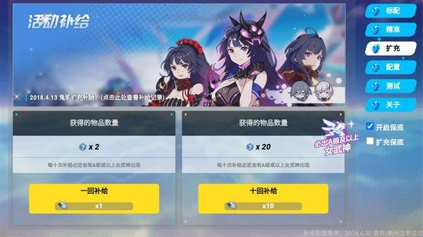 3、点击“扩充”,可以进行活动补给,还是十连补给或者一回补给。