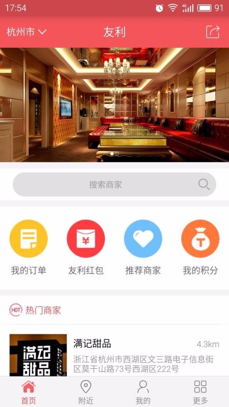 友利app是一款购物平台,这里为用户提供到更加全面的购物选择,可以在线进行寻找到附近所有服务,为用户提供到了各种美食与购物还有大量的休闲娱乐等,还可以搜索附近的运动健身场地,在线预订酒店等,多种服务聚集在一款应用中。