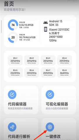 1、打开阿尔法助手后,点击“一键修改”