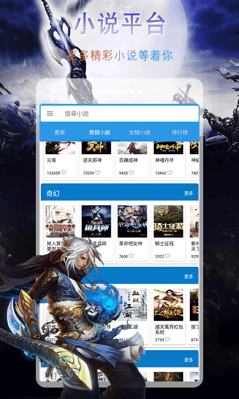 3、在书城界面有各种不同类型的小说提供,方便选择阅读。