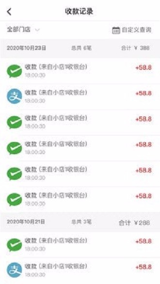 3、在收款记录模块中,查看每笔交易的详细记录,可以通过筛选自定义查询。