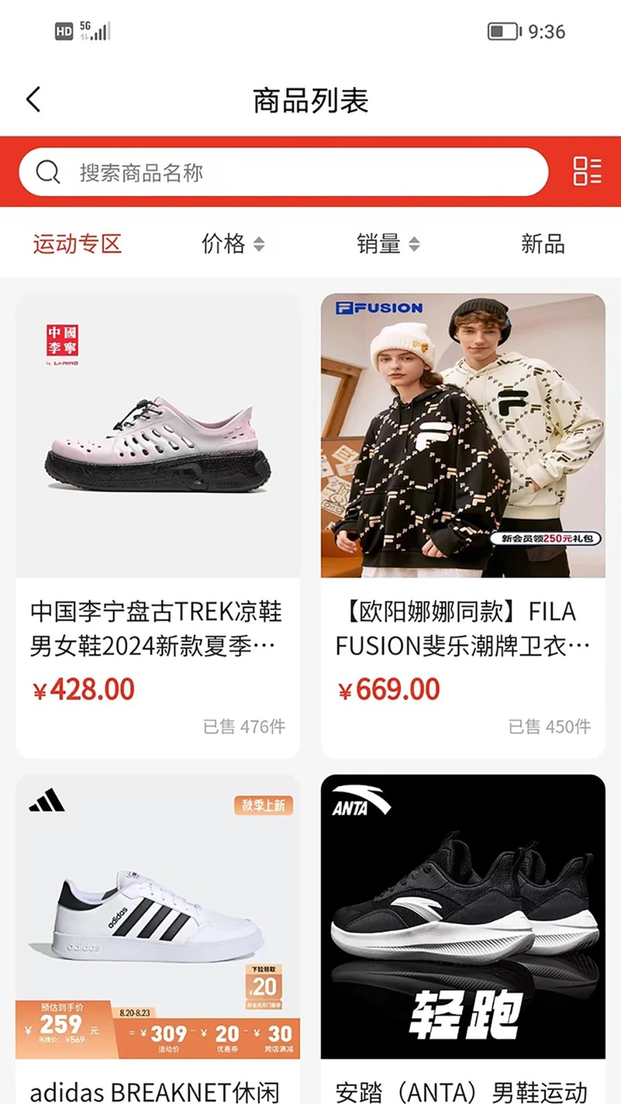 3、在商品列表中可以查看商品的信息,还可以筛选不同的要求进行选购;