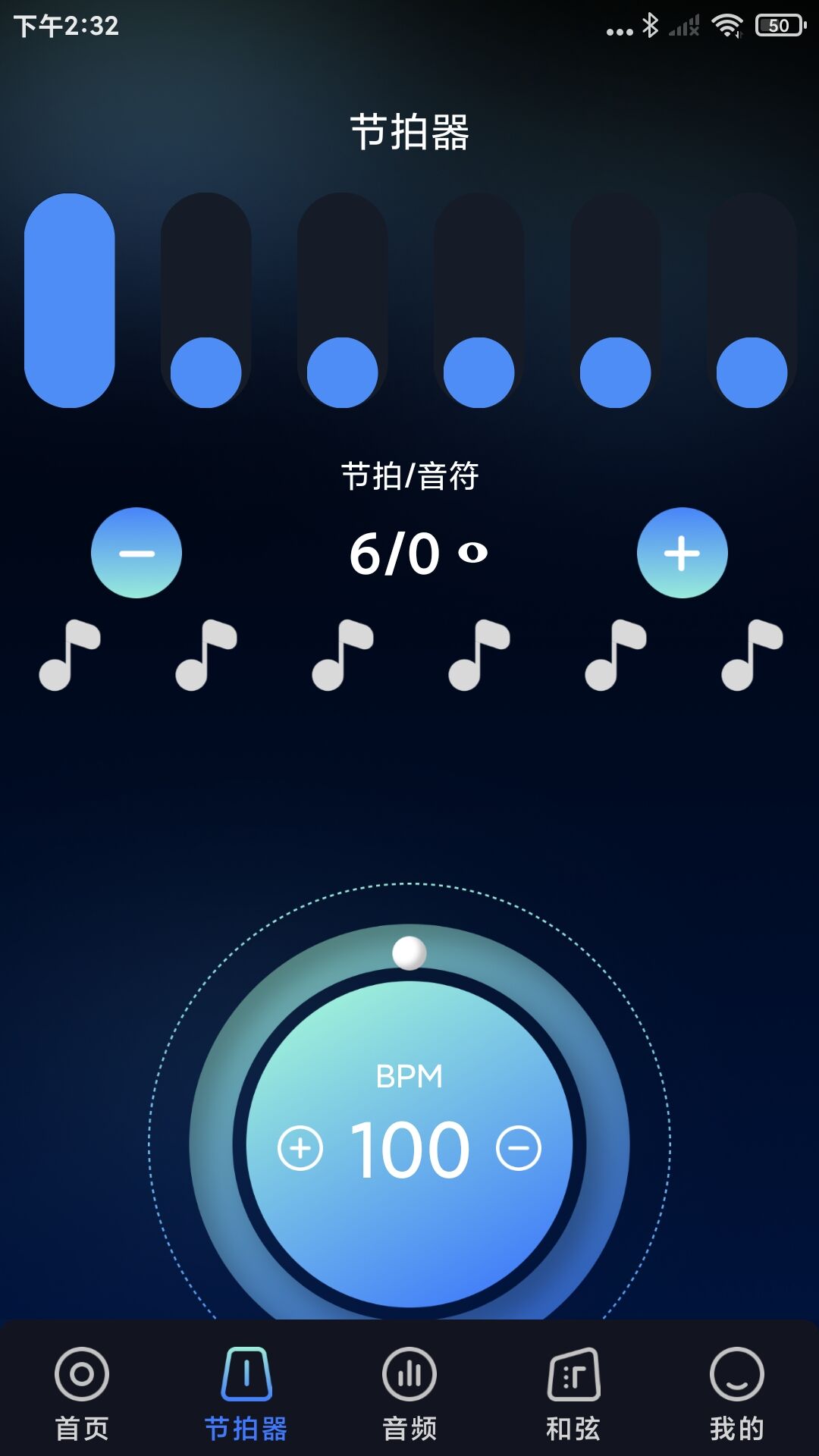 2、在节拍器页面中可以根据不同的情况进行调整BPM值;