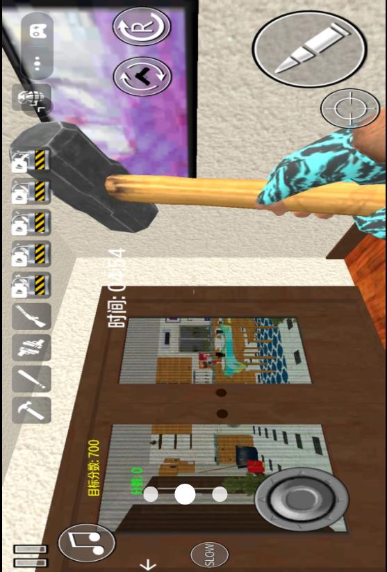 2、合理搭配工具使用,大锤适合精准砸击局部,爆破装置可快速摧毁大范围区域,根据场景需求灵活切换。