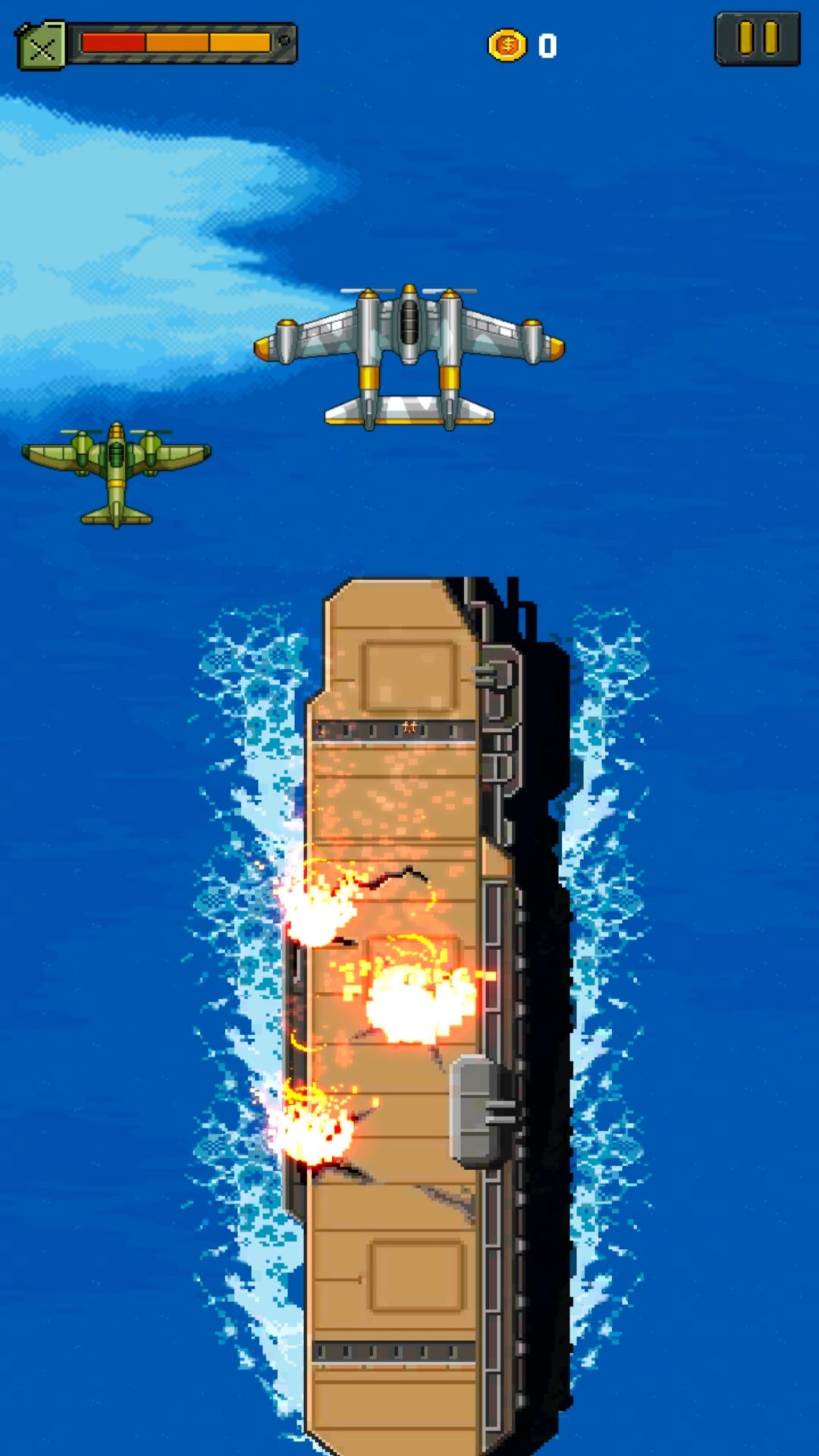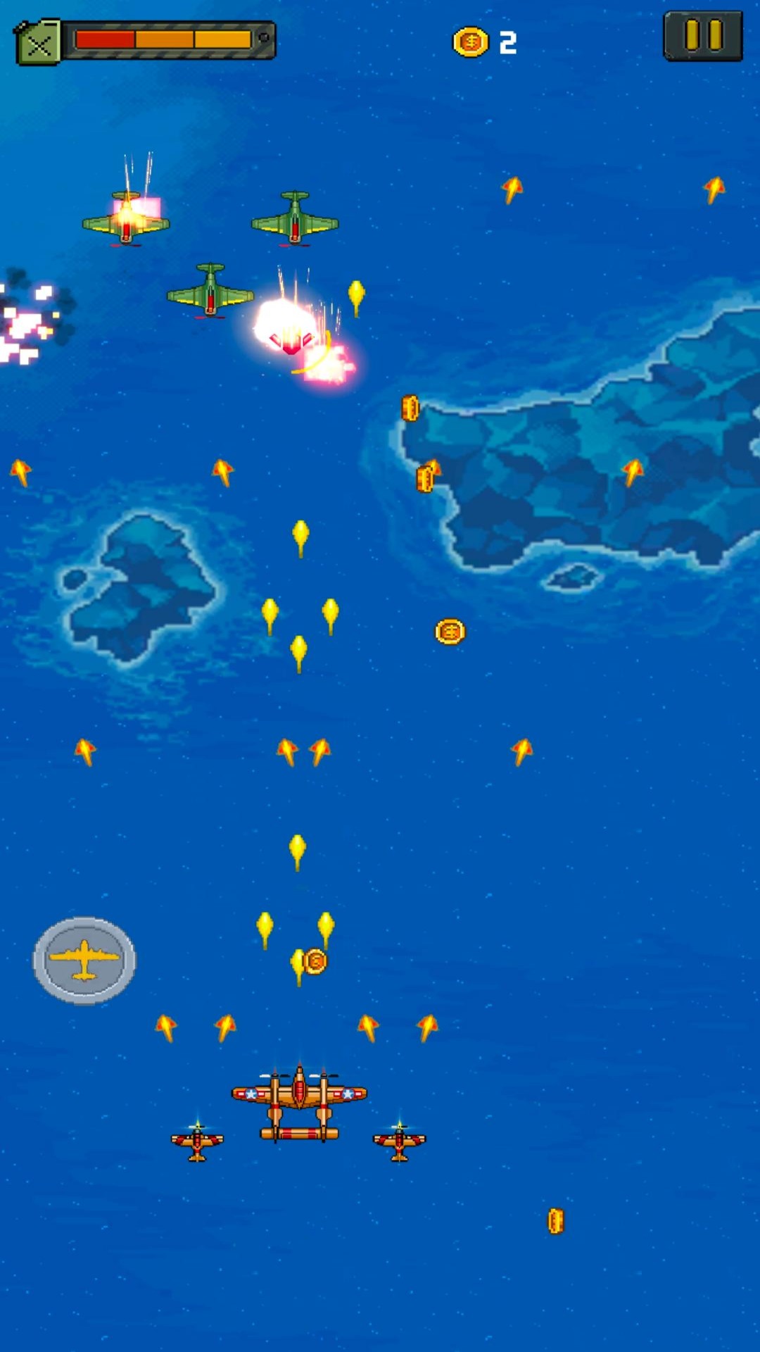 1. 游戏采用精心调校的复古像素美术风格,从战机造型到爆炸特效都完美还原了上世纪街机游戏的视觉特征。