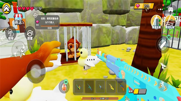 1. 游戏采用第一人称与第三人称可切换的视角设计,让玩家既能体验主观视野也能观察猴子的完整动作。