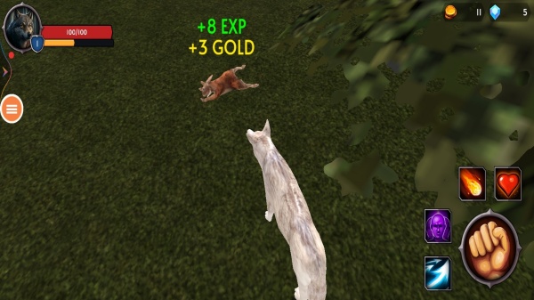 4、找到目标后要进行追击,到达合适的距离就能使用技能攻击,轻松击杀其他动物。