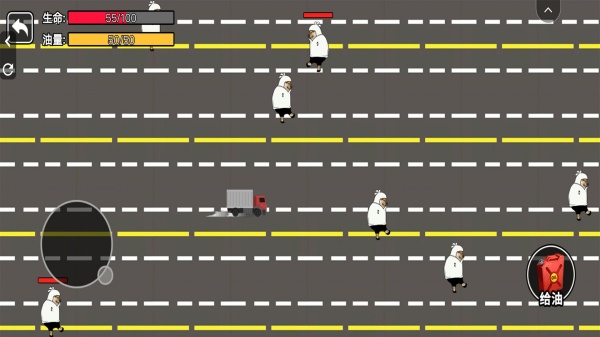 2、自由驾驶卡车穿越所有区域,在驾驶过程中要躲避所有小狗,碰到小狗会扣除生命值。