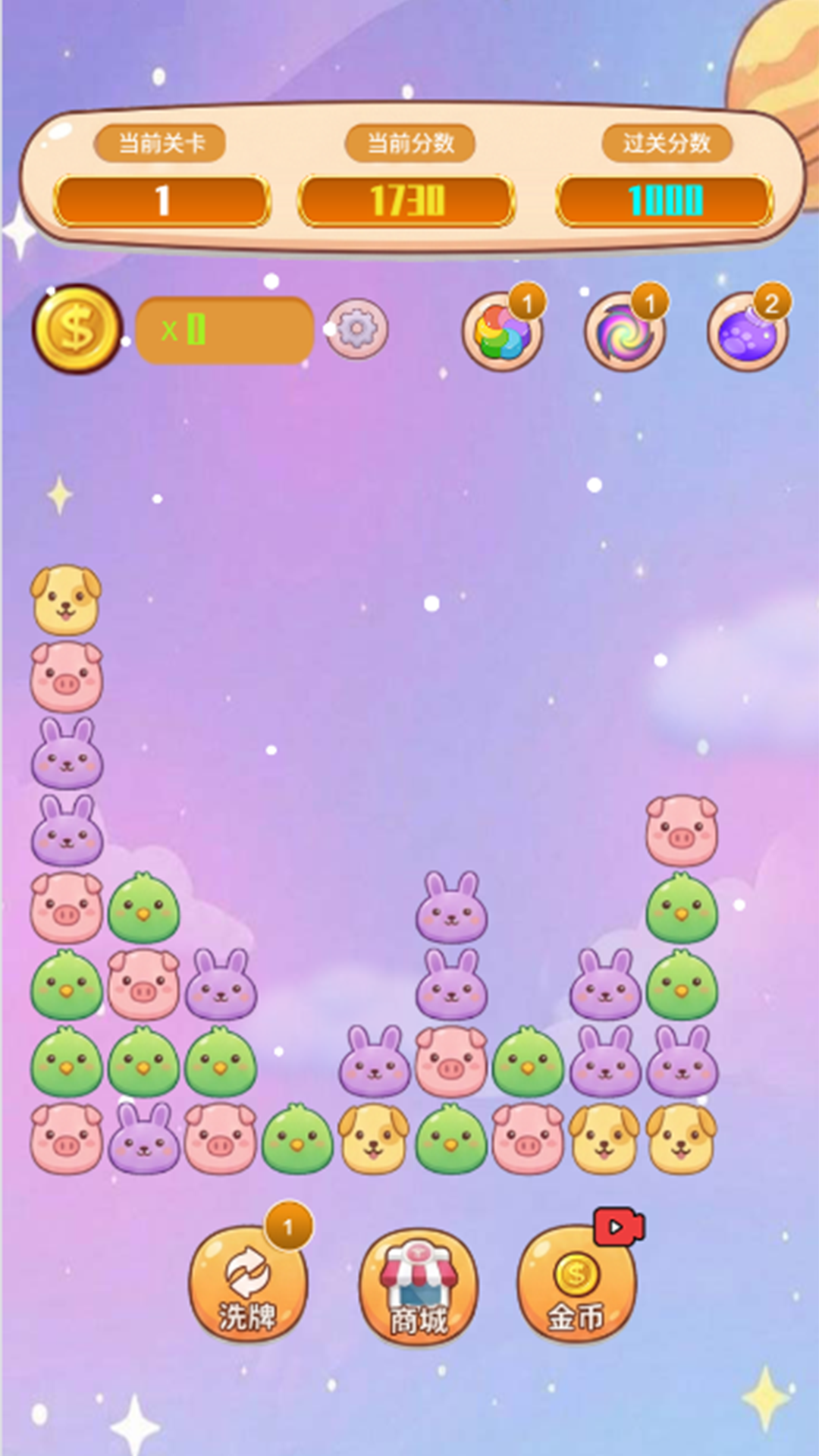 2. 完成每关的特定目标即可通关,例如消除指定数量的某种元素,或在有限的步数内达到目标分数。