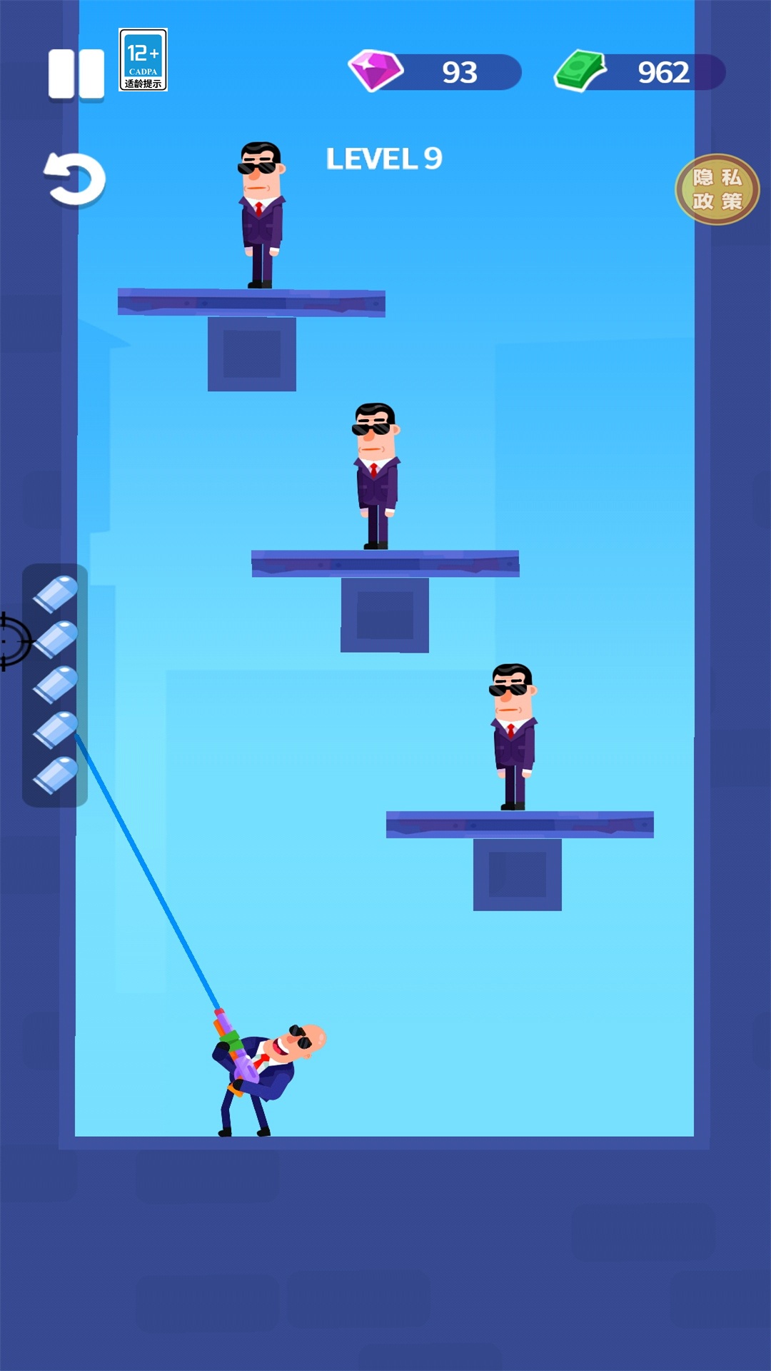 2、以击败各位置隐藏敌人为核心目标,通过弹射射击精准命中敌方,逐个歼灭场内所有敌人。