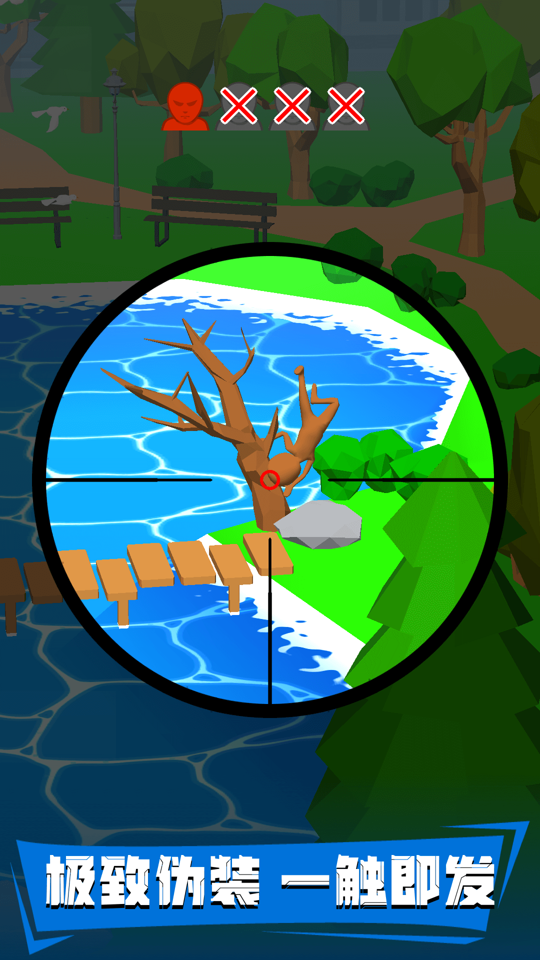 3、搜寻巧妙伪装的隐藏外星人,细致观察场景细节捕捉异常线索,精准锁定外星目标位置,为后续狙击击杀筑牢核心基础。