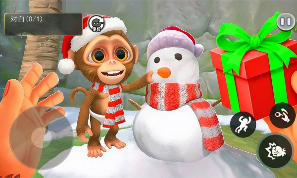 1、用虚拟摇杆控制猴子在森林中自由移动,点击屏幕与大象等邻居互动打招唿,熟悉丛林探索的基础操作。