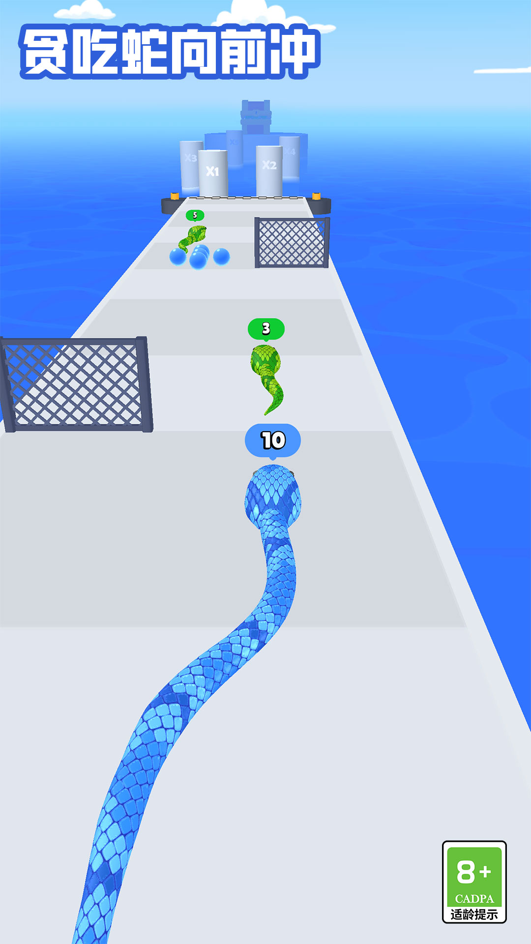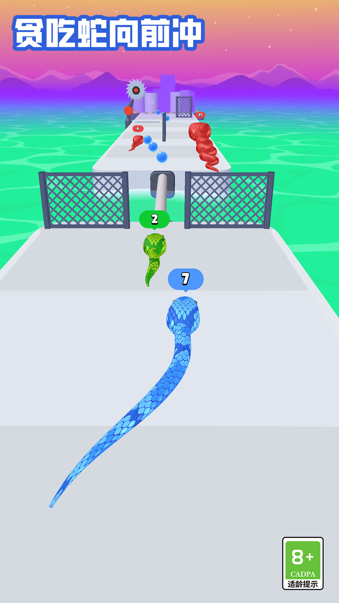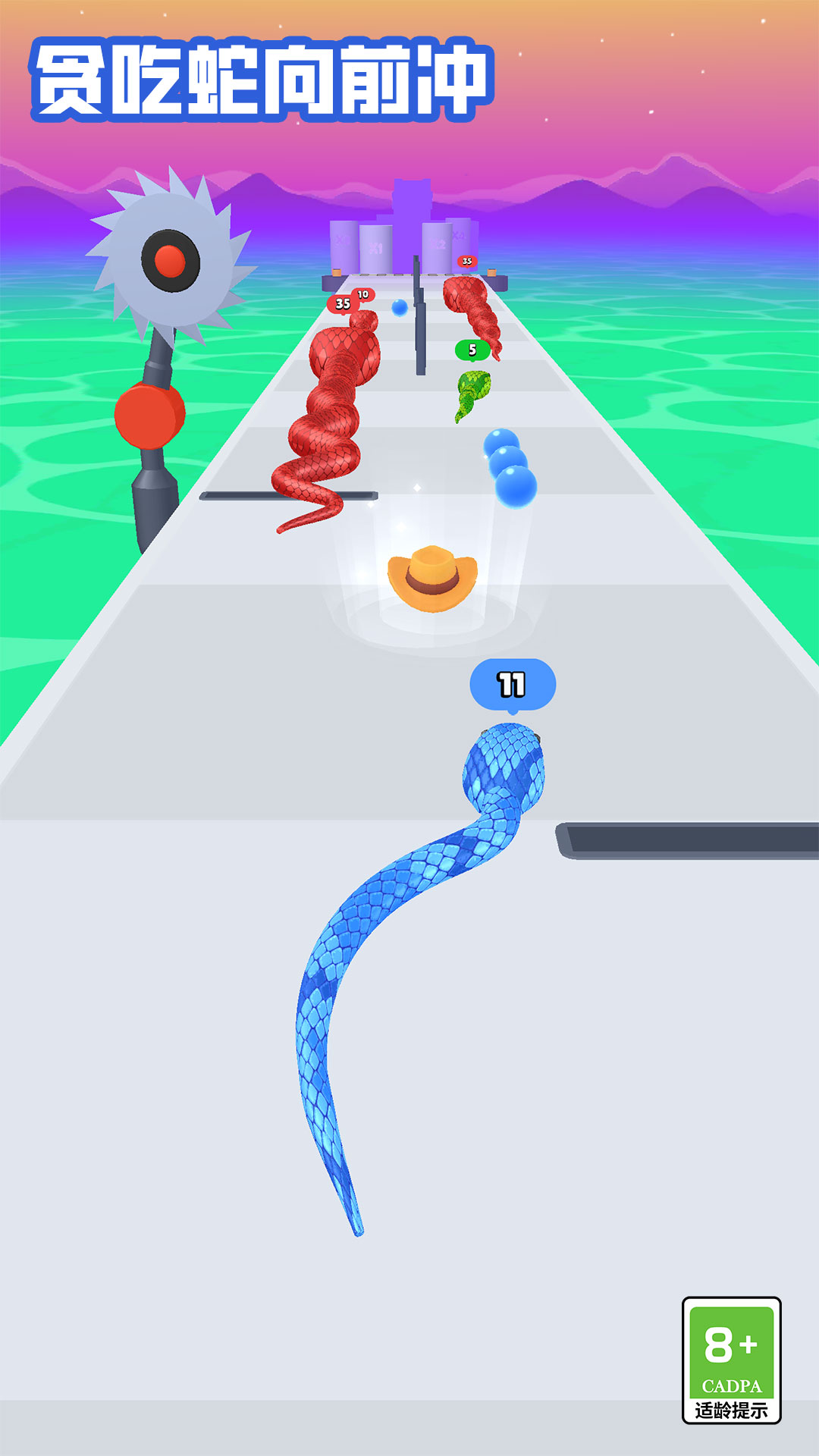 贪吃蛇向前冲是一款融合贪吃蛇玩法的跑酷休闲手游,玩家操控小蛇在赛道上疾驰,通过吞噬能量点不断增长身体长度,同时灵活躲避各类障碍物,体验紧张刺激的追逐乐趣。游戏支持单人闯关、1v1实时对战及无尽模式,满足从休闲到竞技的不同玩家需求。