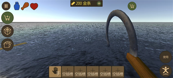 2. 玩家初始仅拥有一架脆弱木筏,必须通过打捞四周漂浮的电子零件与稀有材料来维持生命并强化据点。