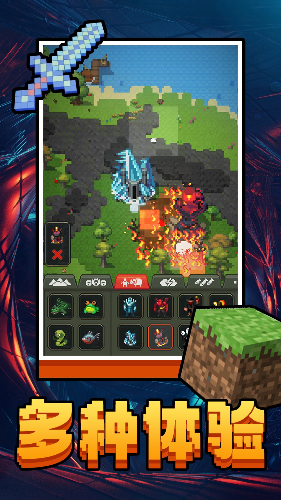 1.是一款以像素风格呈现的经营模拟游戏,玩家将以上帝视角主导世界的诞生与演变。