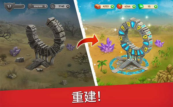 - 感受"沙漠节奏"!这个全新的放松 模式已取代资源建 筑关卡中的限时模式。 轻松无压力地游玩吧!