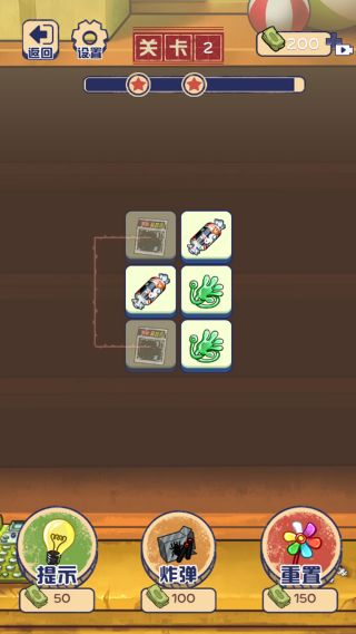 2、关卡内出现相同物品方块时,通过移动操作让它们相邻,触发消除。