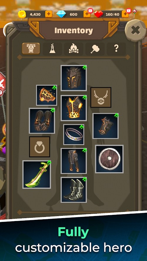4、制造你自己的武器和盔甲,提高技能,打造最强骑士,法师或弓箭手。