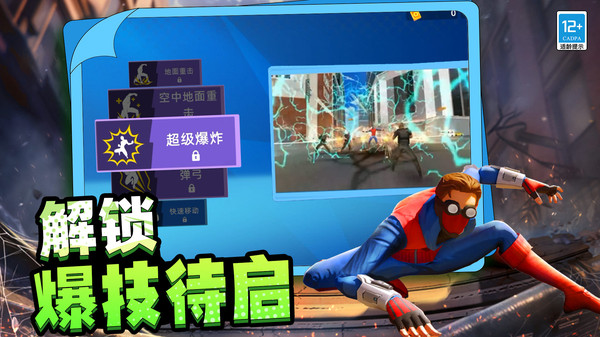 3、通过完成任务积累资源,可以解锁并升级多种蛛丝技能与战斗招式。同时,游戏提供了大量风格各异的英雄战衣。