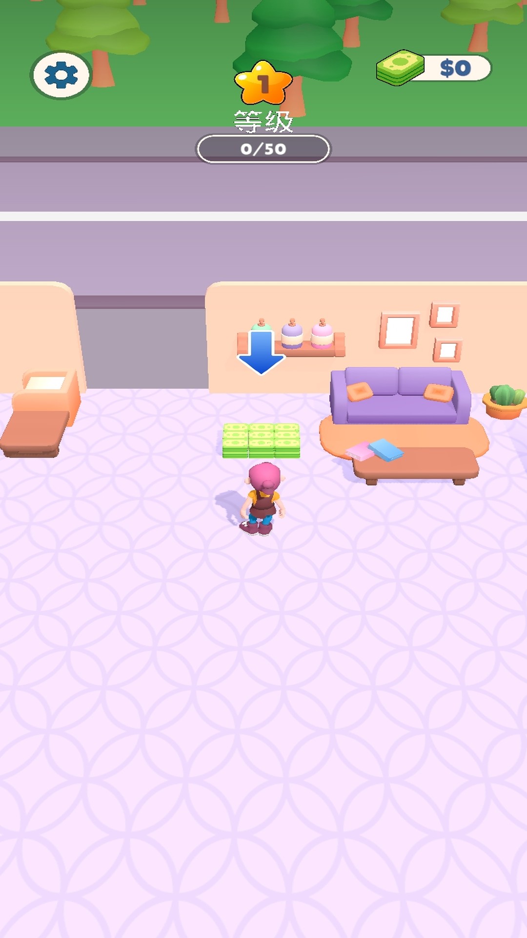1.进入美容院后玩家需要控制主角行动去收集初始钞票。