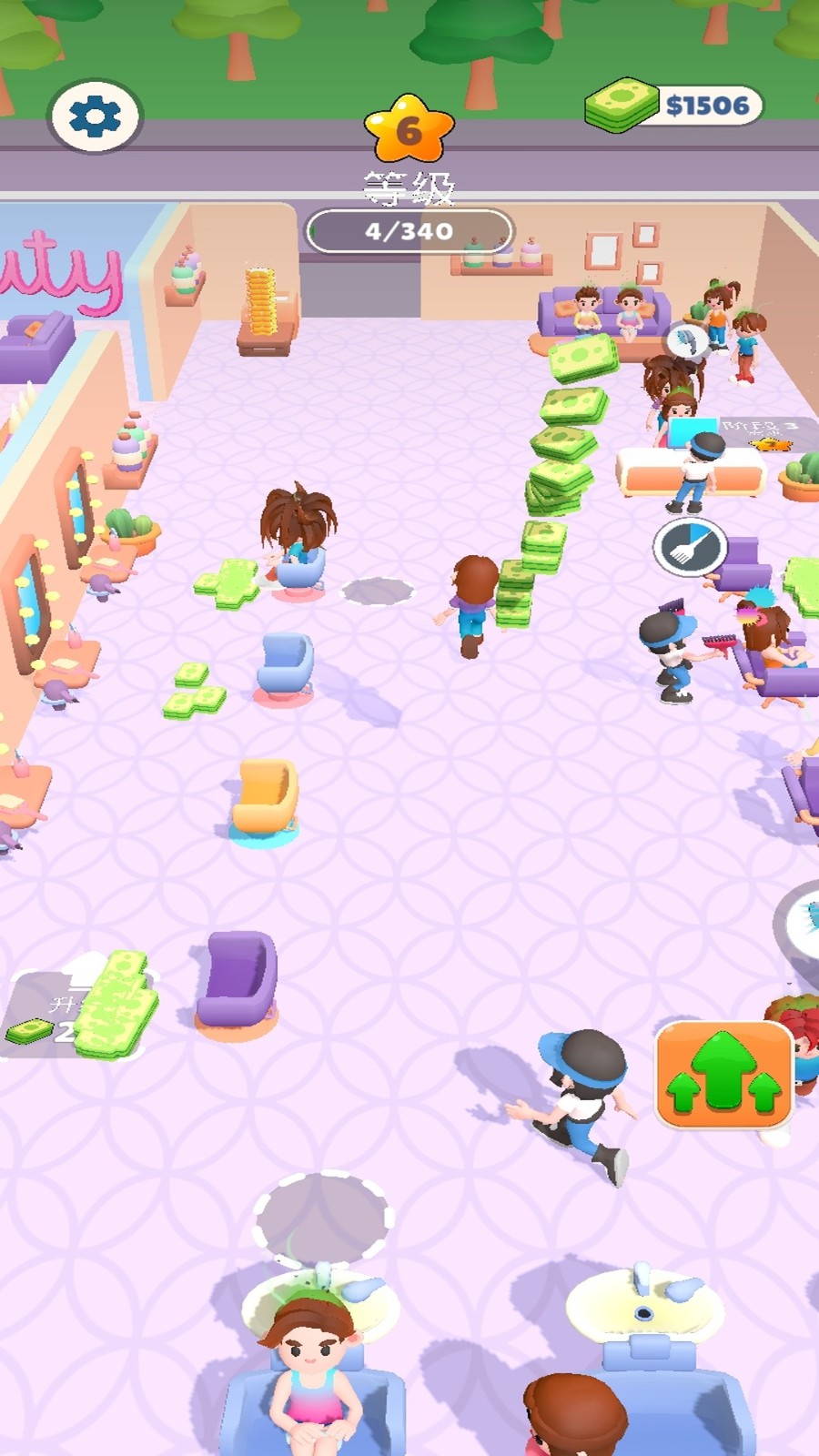 2.积累经营收益后可解锁高级美容设备与店面区域,并雇用员工分担工作,同时通过培训提升员工专业技能与效率。