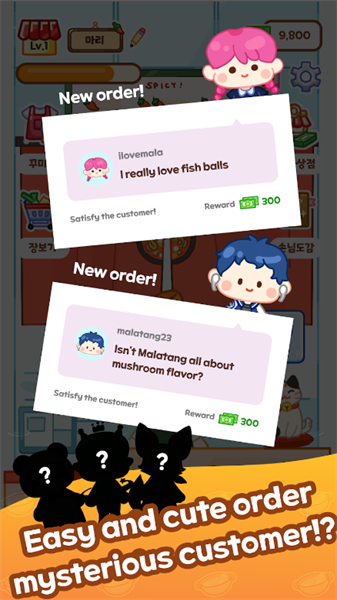 3.每位顾客进店时,头顶都会显示一个带有图标和文字的提示气泡,明确表达他们的口味偏好。