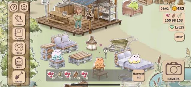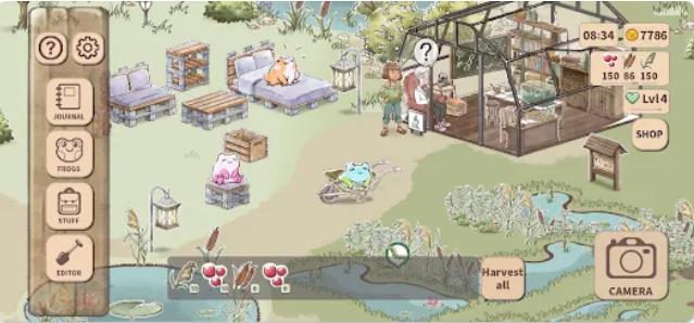 3、自由装饰的避难所根据个人喜好布置湿地环境,打造独一无二的青蛙家园。