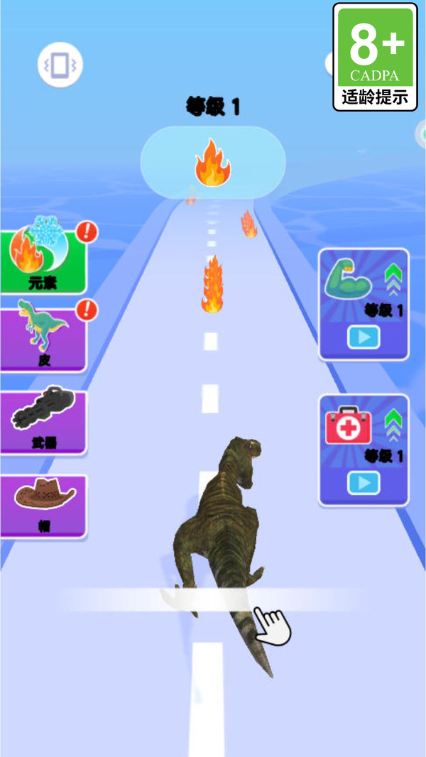 1、点击开始游戏,操控初始怪兽开启冒险,首关聚焦火元素吸收,熟悉元素采集与基础移动操作。